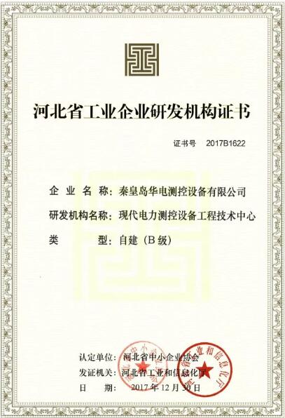 近日獲悉,公司建設(shè)的研發(fā)機(jī)構(gòu)“現(xiàn)代電力測(cè)控設(shè)備工程技術(shù)中心”被河北省中小企業(yè)協(xié)會(huì)和河北省工業(yè)和信息化廳認(rèn)定為河北省工業(yè)企業(yè)研發(fā)機(jī)構(gòu),并頒發(fā)了證書(shū),證書(shū)號(hào)為2017B1622。