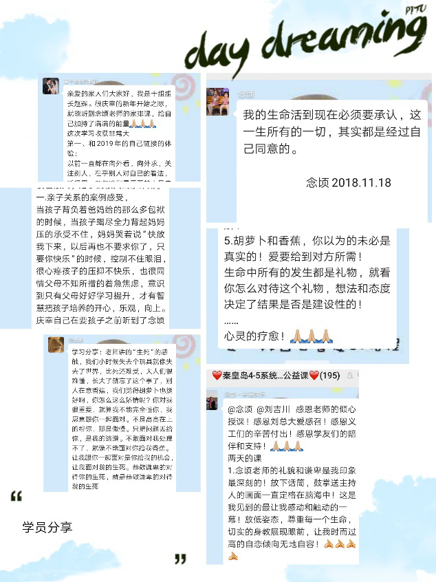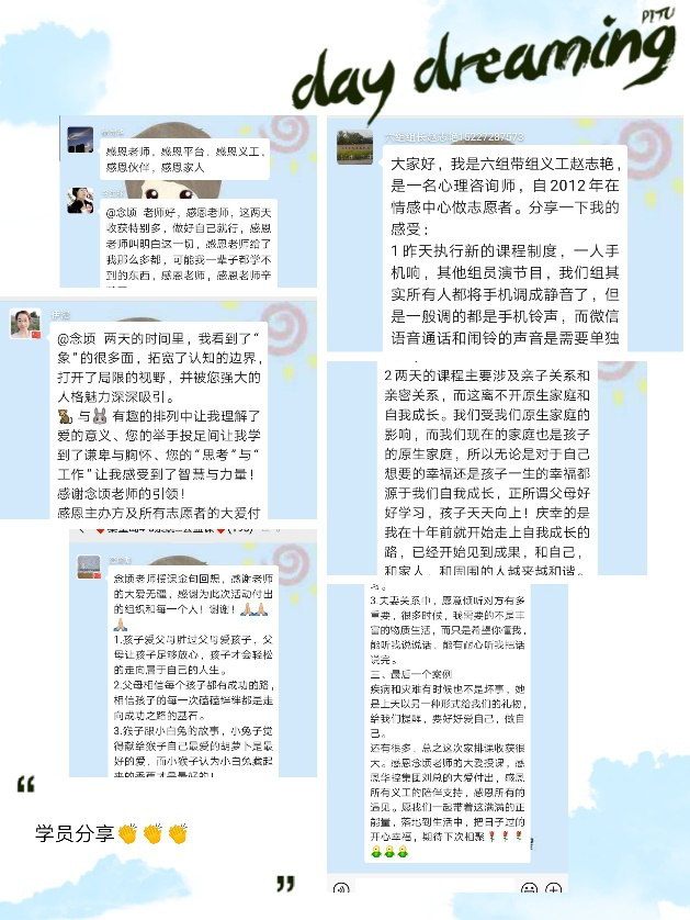 課程結(jié)束后看到大家都在群里分享自己的感想與收獲,讓我想起開課前臨時邀請擔(dān)任主持人,當(dāng)時的心情特別矛盾。有興奮,第一次上臺當(dāng)主持對自己是個很大的挑戰(zhàn);有心虛,非常不自信覺得自己做不好;有糾結(jié),因為孩子還有兩天時間就期末考試。最后我還是決定抓住機(jī)會,做自己想做的,相信越努力越幸運,于是我就這樣在沒有任何準(zhǔn)備的情況下做了兩天的主持人。