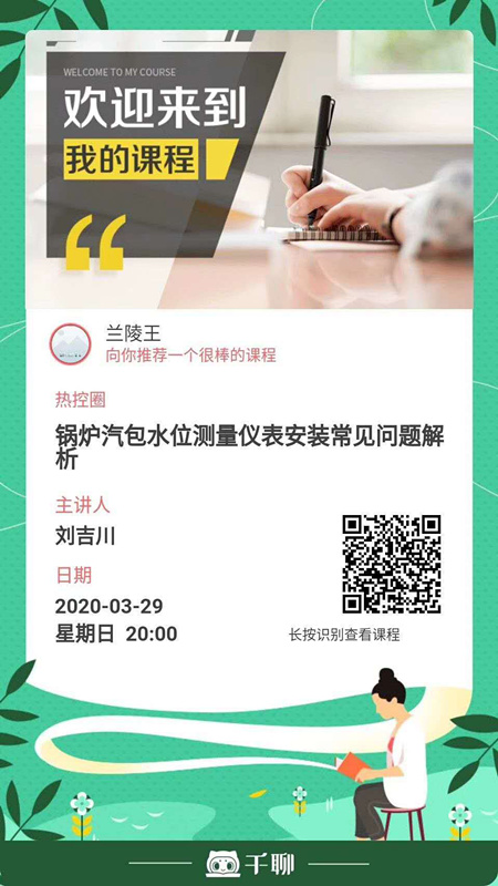 2020年3月29日晚8時,秦皇島華控集團(tuán)有限公司董事長劉吉川先生將攜手【熱控圈公眾號】舉辦“火力發(fā)電廠鍋爐汽包水位測量系統(tǒng)系列講座之儀表安裝常見問題解析”。
