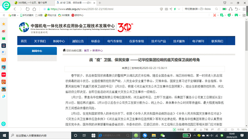 【企業(yè)要聞】戰(zhàn)“疫”面前,人人有責(zé) -記中國機(jī)電一體化技術(shù)應(yīng)用協(xié)會(huì)工程技術(shù)發(fā)展中心刊登我司報(bào)道有感