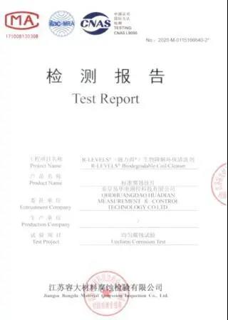 融力得®生物降解環(huán)保清洗劑除垢率優(yōu)于DL/T 957-2017《火力發(fā)電廠(chǎng)凝汽器管化學(xué)清洗及成膜導(dǎo)則》和DL/T 523-2017《化學(xué)清洗緩蝕劑應(yīng)用性能評(píng)價(jià)指導(dǎo)及試驗(yàn)方法》。清洗除垢效果顯著。