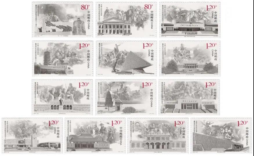 2015年9月3日上午,《中國人民抗日戰(zhàn)爭暨世界反法西斯戰(zhàn)爭勝利七十周年》紀(jì)念郵票首發(fā)式在西安市郵政公司舉行,本套郵票共13枚,小型張1枚。全套郵票面值為20.8元?!吨袊嗣窨谷諔?zhàn)爭暨世界反法西斯戰(zhàn)爭勝利七十周年》紀(jì)念郵票,是我國歷次紀(jì)念抗戰(zhàn)勝利題材郵票當(dāng)中發(fā)行枚數(shù)最多的一套。郵票內(nèi)容分別為:1.“九一八”歷史博物館;2.東北烈士紀(jì)念館;3.中國人民抗日戰(zhàn)爭紀(jì)念館;4.上海淞滬抗戰(zhàn)紀(jì)念館;5.侵華日軍南京大屠殺遇難同胞紀(jì)念館;6.臺兒莊大戰(zhàn)紀(jì)念館;7.延安革命紀(jì)念館;8.八路軍總部舊址紀(jì)念館;9.百團大戰(zhàn)紀(jì)念館;10.平型關(guān)大捷紀(jì)念館;11.冉莊地道戰(zhàn)紀(jì)念館;12.新四軍紀(jì)念館;13.滇西抗戰(zhàn)紀(jì)念館。小型張畫面以《大刀進行曲》雕塑、長城、紅綢、和平鴿為主要元素,與中國人民抗日戰(zhàn)爭暨世界反法西斯戰(zhàn)爭勝利七十周年紀(jì)念活動標(biāo)識相互呼應(yīng),融為一體。