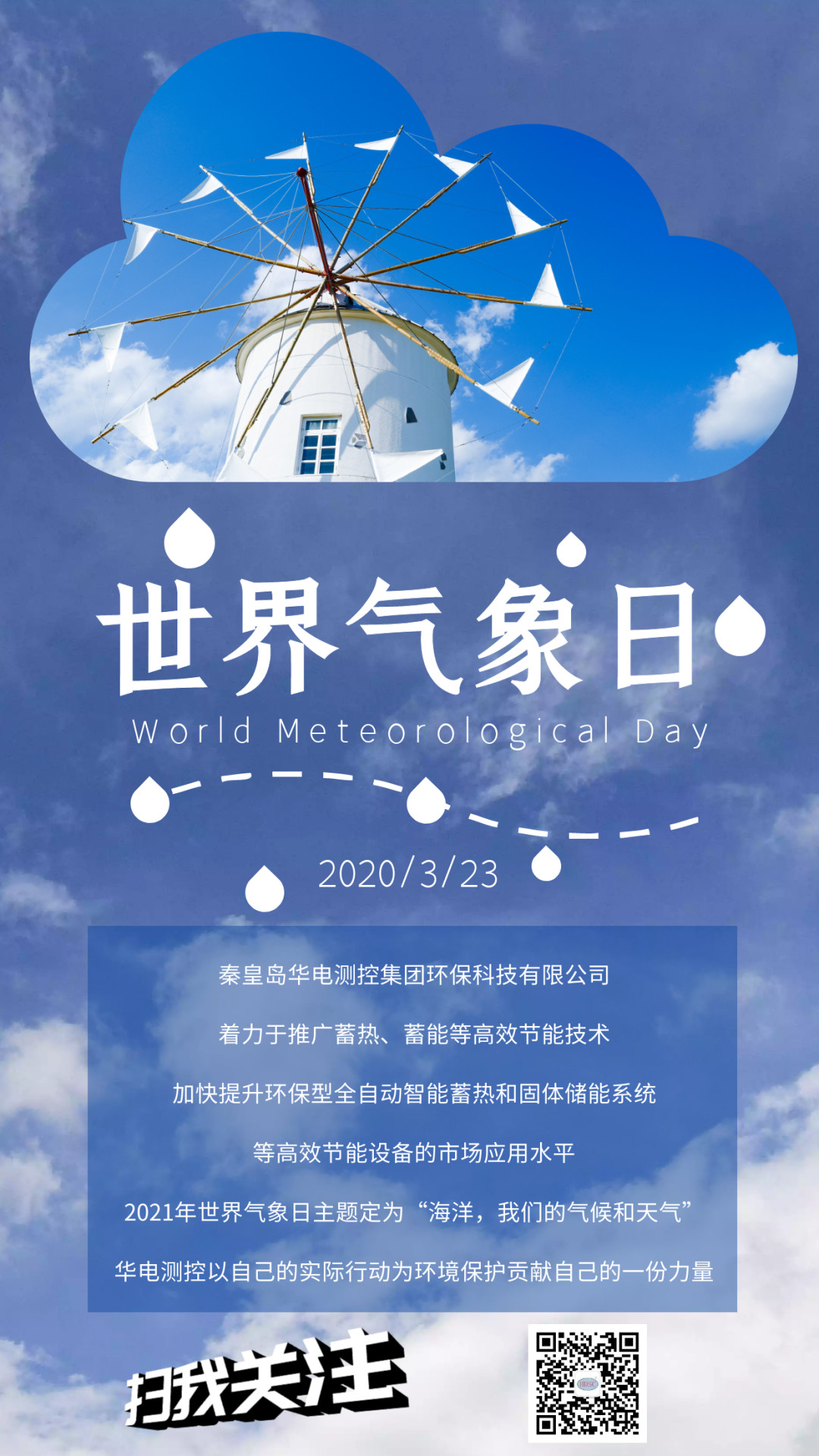 世界氣象日(World Meteorological Day)又稱“國際氣象日”是世界氣象組織成立的紀(jì)念日,世界氣象日開展的時間定于每年的3月23日。開展世界氣象日活動的主要目的是讓各國人民了解和支持世界氣象組織的活動,喚起人們對氣象工作的重視和熱愛,推廣氣象學(xué)在航空、航海、水利、農(nóng)業(yè)和人類其他活動方面的應(yīng)用。
