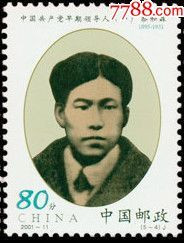 為紀(jì)念在解放全中國的革命事業(yè)中嘔心瀝血,英勇戰(zhàn)斗,壯烈犧牲的中國共產(chǎn)黨的無數(shù)英雄兒女,中國郵政在中國共產(chǎn)黨建黨80周年之際,發(fā)行了《中國共產(chǎn)黨早期領(lǐng)導(dǎo)人(一)》紀(jì)念郵票1套5枚,表達對革命先輩們的崇高敬仰。這是2001年6月28日發(fā)行的紀(jì)念郵票,設(shè)計者是王虎鳴。