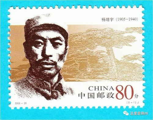國家郵政局2005年8月1日發(fā)行《人民軍隊早期將領(lǐng)(二)》紀念郵票1套5枚。志號:2005-26。設(shè)計:閻炳武。其中第一枚是抗日英雄楊靖宇。(5-1)J ,楊靖宇,面值80分,發(fā)行860萬枚。