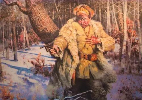 抗日戰(zhàn)爭中,曾有一個姓丁的叛徒忍受不了敵人的嚴刑拷打和威逼利誘,可恥地叛變了,出賣了抗日聯(lián)軍。這個可惡的叛徒領(lǐng)著日本鬼子和偽軍,將抗日聯(lián)軍包圍了起來。面對緊急的形勢,楊靖宇決定將主力轉(zhuǎn)移,命令其突圍出去,他自己帶一支小部隊留下來牽制敵人。大家都不同意,楊靖宇堅決的說:“我是司令,我說了算!”他解釋說:“我是敵人的眼中釘,吸引力最大?!睏罹赣盍粝聛砗髱ьI(lǐng)戰(zhàn)士們多次打退敵人進攻,到天黑時,主力部隊安全轉(zhuǎn)移出去了。留下的戰(zhàn)士只剩下五、六十人了,還有一部分傷員。而且當?shù)厝罕娨猜?lián)系不上,楊靖宇命令將傷員轉(zhuǎn)移,準備最后的戰(zhàn)斗。負責帶領(lǐng)傷員轉(zhuǎn)移的干部說:“總司令,讓我留下吧,好保護你!”楊靖宇嚴肅的說:“不行!現(xiàn)在,前有伏兵,后有追兵,在這嚴峻的時候,領(lǐng)導的責任是帶好隊伍,保護戰(zhàn)士,不把傷員轉(zhuǎn)移出去,我于心不安!”傷員轉(zhuǎn)移走了之后,經(jīng)過與敵人的多次交火,楊靖宇身邊只剩下兩個小戰(zhàn)士。連續(xù)戰(zhàn)斗了三天三夜,又沒有吃的,饑腸轆轆,肚子餓得前心貼后背。楊靖宇把兩個小戰(zhàn)士安頓好,讓他們休息一會兒,他要到屯子里找點吃的。他勒了勒皮帶,一步一步艱難的向屯子走去。肚子餓得頭暈眼花,幾次要栽倒在地。楊靖宇把棉衣里的棉花撕下來就著雪吃,一口一口艱難的咽著??????