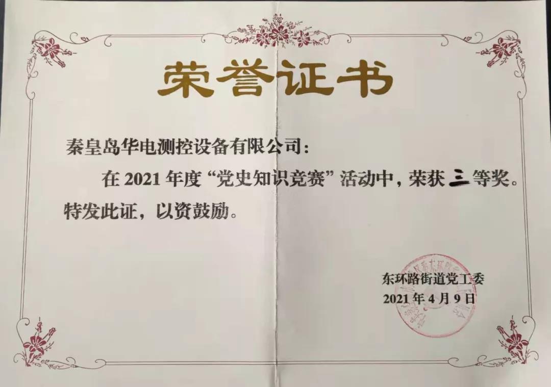 為慶祝中國共產(chǎn)黨成立100周年,加深黨員對黨的歷史、黨的知識、黨的理論和路線方針的認(rèn)識,激發(fā)黨員的愛黨愛國熱情,堅(jiān)定走中國特色社會主義道路的信心,2021年4月9日,東環(huán)路街道黨工委舉辦了黨史知識競賽活動,華電測控黨支部作為非公企業(yè)代表參加了此次競賽。