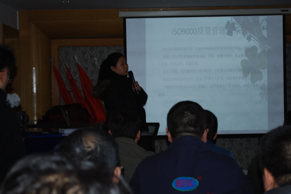 為了使全體員工熟練掌握工作程序并不斷完善、優(yōu)化ISO9001:2008質(zhì)量管理體系流程,進一步把質(zhì)量管理體系建設(shè)工作向縱深推進,提高質(zhì)量管理能力,讓公司每名員工都學(xué)習(xí)、理解ISO9000質(zhì)量管理體系流程和標準,使基礎(chǔ)管理工作更加標準化、規(guī)范化。3月11日,在公司管理部的組織下于會議室進行了ISO9000質(zhì)量管理體系――工程部工作流程的培訓(xùn),由工程部內(nèi)審員劉曉娜進行授課。工程部全體人員,生產(chǎn)部、國貿(mào)部、管理部、市場部和客服部等部門人員等共34人參加了本次培訓(xùn)。