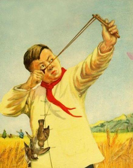 1958年2月12日,中共中央、國務(wù)院發(fā)出《關(guān)于除四害講衛(wèi)生的指示》,提出要在10年或更短一些的時間內(nèi),完成消滅老鼠、麻雀、蒼蠅、蚊子的任務(wù)。指示發(fā)出后,全國掀起“除四害”運動,不斷宣傳“排山倒海除四害,造福子孫萬萬代。”這次“全民除四害”運動,大概也是一項世界紀(jì)錄。文學(xué)通常和時事生活是緊密相連的。有人為此壯舉作了詩歌,如《擂鼓鳴金除四害》:“老鼠奸,麻雀壞,蒼蠅蚊子像右派。吸人血,招病害,偷人幸福搞破壞。千家萬戶快動手,擂鼓鳴金除四害。”時人還編成順口溜:“鼠雀蚊蠅,害人妖精。除盡四害,下定決心。人人動手,個個出陣。打早打小,斬草除根。要叫四害,斷子絕孫。”人們嘴里唱著“蒼蠅、蚊子、麻雀、老鼠你往那里跑?東村西院都安排好……”的《除四害歌》,手里拿著各式各樣的“武器”,不停地拍蒼蠅、轟麻雀、打老鼠。