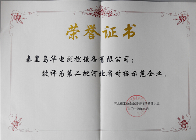 2014年9月,公司被河北省工業(yè)信息化廳工業(yè)企業(yè)對標(biāo)行動領(lǐng)導(dǎo)小組認(rèn)定為第二批河北省對標(biāo)(技術(shù)創(chuàng)新類)示范企業(yè),并于近日頒發(fā)了榮譽證書和牌匾。