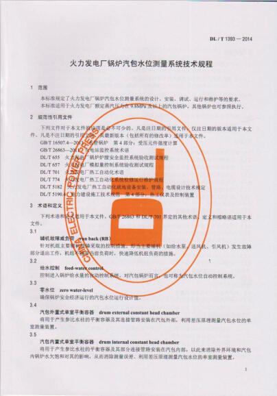 近日,公司參與編制的《火力發(fā)電廠鍋爐汽包水位測(cè)量技術(shù)規(guī)程》電力行業(yè)標(biāo)準(zhǔn)(標(biāo)準(zhǔn)編號(hào)DL/T 1393-2014)正式出版發(fā)行。此行業(yè)標(biāo)準(zhǔn)由國(guó)家能源局于2014年第11號(hào)公告發(fā)布。該標(biāo)準(zhǔn)規(guī)定了火力發(fā)電廠鍋爐汽包水位測(cè)量技術(shù)的基本要求及內(nèi)容,條文清晰、系統(tǒng)性強(qiáng)、數(shù)據(jù)詳實(shí),為規(guī)范火力發(fā)電廠鍋爐汽包水位測(cè)量技術(shù)提供了依據(jù),有助于提高火力發(fā)電廠生產(chǎn)的安全性。