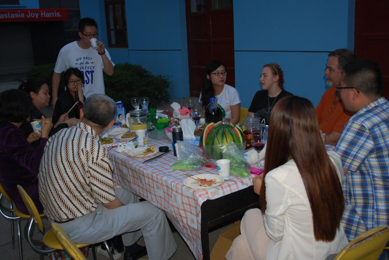 一下班,燒烤party就在公司花園旁如期開始。公司各部門員工聞風而至,紛紛加入了此次派對。工程部的劉曉娜貢獻出拿手好菜,用自己的獨門秘方腌制了肉串和蔬菜串??头拷?jīng)理助理盧曉光更是親手為客人烹飪燒烤。華電員工將精心制作的美食與美國客人進行分享,加深了彼此的交流,促進了相互間的情誼。生產(chǎn)部的李小濱還攜帶著他的橫笛進行了演奏,將派對的氣氛推向高潮。