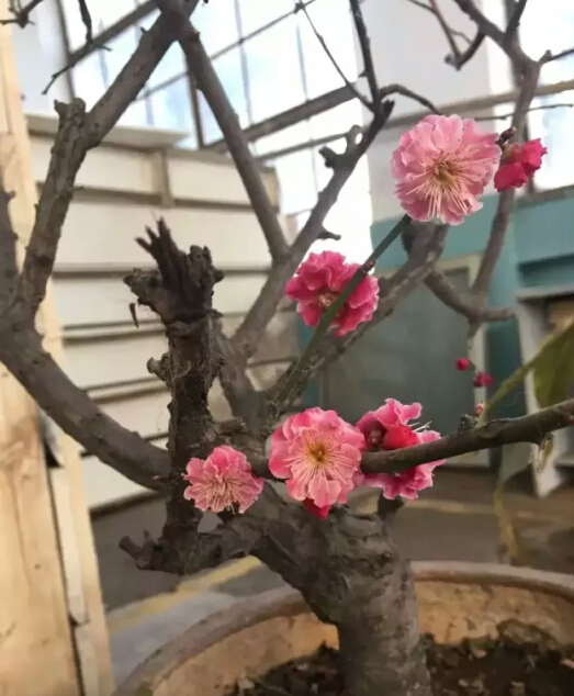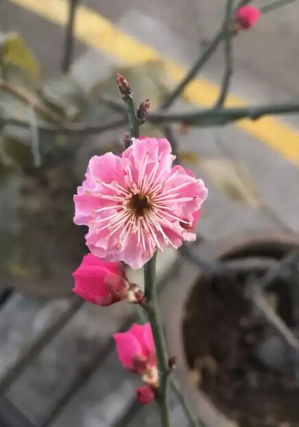 也許是工作的繁忙讓我經(jīng)常忽略周圍的環(huán)境變化,今天不經(jīng)意的一瞥,竟然發(fā)現(xiàn)了幾朵嬌艷的粉色?。?!那是保潔姐放在車間一盆不起眼的“干樹杈”,我走近一看,竟然冒出了好幾朵粉嫩的花,有的含苞待放、有的正在盛開,湊近一聞一股黯然凜冽的幽香撲鼻而來(lái),沁人心脾。