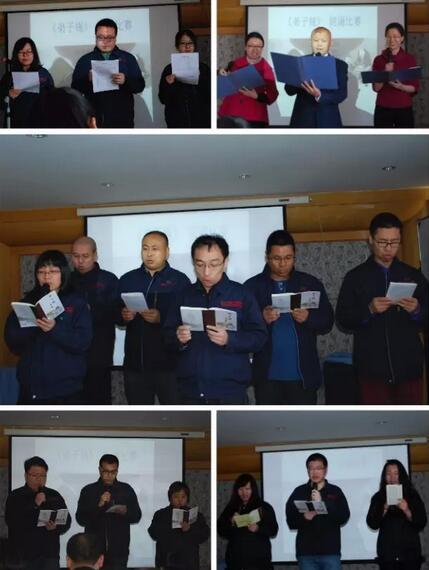 此次朗誦比賽高潮迭起、異彩紛呈,各個部門在選材、朗誦形式、服裝隊形等方面別出心裁、力求不凡:國貿(mào)部學(xué)貫中西,用中英雙語朗誦了《弟子規(guī)》,讓人眼前一亮;工程部借著快板演出,鏗鏘有力地朗誦,將比賽推向高潮;管理部更是將《弟子規(guī)》帶入了家庭,開場就是子女的誦讀錄音,伴著統(tǒng)一的傳統(tǒng)服飾,一出場就讓古韻流淌、文化傳承……每個部門都用自己的方式詮釋了《弟子規(guī)》的內(nèi)涵,每個節(jié)目都發(fā)人深思。這些精彩的節(jié)目源自于大家對《弟子規(guī)》精神的深入理解和持續(xù)踐行。最終,工程部脫穎而出,獲得了本次比賽的一等獎,管理部和生產(chǎn)部也分獲二、三等獎。
