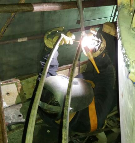 此次工程時間緊張、工作量大,更加考驗我們的是工作現(xiàn)場的超高溫度,經(jīng)電廠人員告知,我方施工區(qū)域的平均溫度一直處于40℃-50℃,峰值達53℃!它時時刻刻考驗著我們的耐性,透支著我們的體力。