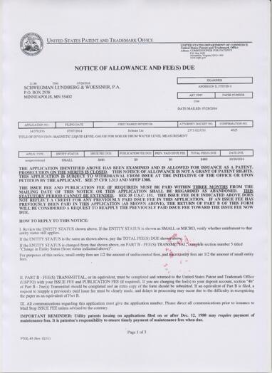 好消息:公司于2014年7月向美國提交的“汽包水位磁致液位計”發(fā)明專利申請,經(jīng)過美國知識產(chǎn)權(quán)局嚴謹認真的審查,已經(jīng)授予了發(fā)明專利權(quán)。這是我公司獲得的第35項自主知識產(chǎn)權(quán)。