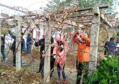 在黨支部書記劉劍鋒同志的指揮下,大家兵分兩路,不到一個小時就處理好了花園中所有的葡萄秧。勞動過程中,大家其樂融融,有說有笑。希望這些葡萄秧們安全過冬,來年結出甜美的葡萄。