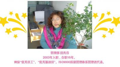 【“印象•華電”系列報道】難忘的ISO9000取證之旅” 2018-04-04管理部 田秀芬2003年入職,在職15年。曾獲“優(yōu)秀員工”、“優(yōu)秀報道員”。ISO9000質(zhì)量管理體系管理者代表。 作為一名在職十五年的老員工,我與華電測控一路走來、共同成長,有很多美好的回憶和動人的故事,今天我要講More