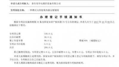 公司于2016年12月16日提交的“一種槽式太陽(yáng)能集熱器反射鏡組”(專(zhuān)利號(hào):201621383993.6)專(zhuān)利已被中華人民共和國(guó)國(guó)家知識(shí)產(chǎn)權(quán)局授予專(zhuān)利權(quán)。此項(xiàng)專(zhuān)利的授權(quán),標(biāo)志著公司已經(jīng)擁有39項(xiàng)自主知識(shí)產(chǎn)權(quán)。 本實(shí)用新型公開(kāi)More