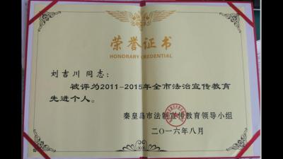喜訊:秦皇島華電測控設備有限公司總經(jīng)理劉吉川先生被評為“2011-2015年全市法治宣傳教育先進個人”,劉吉川先生作為首個私營企業(yè)家被評選上“先進個人”。 2016年11月25日上午召開了全市 “六五”普法總結(jié)暨 “More